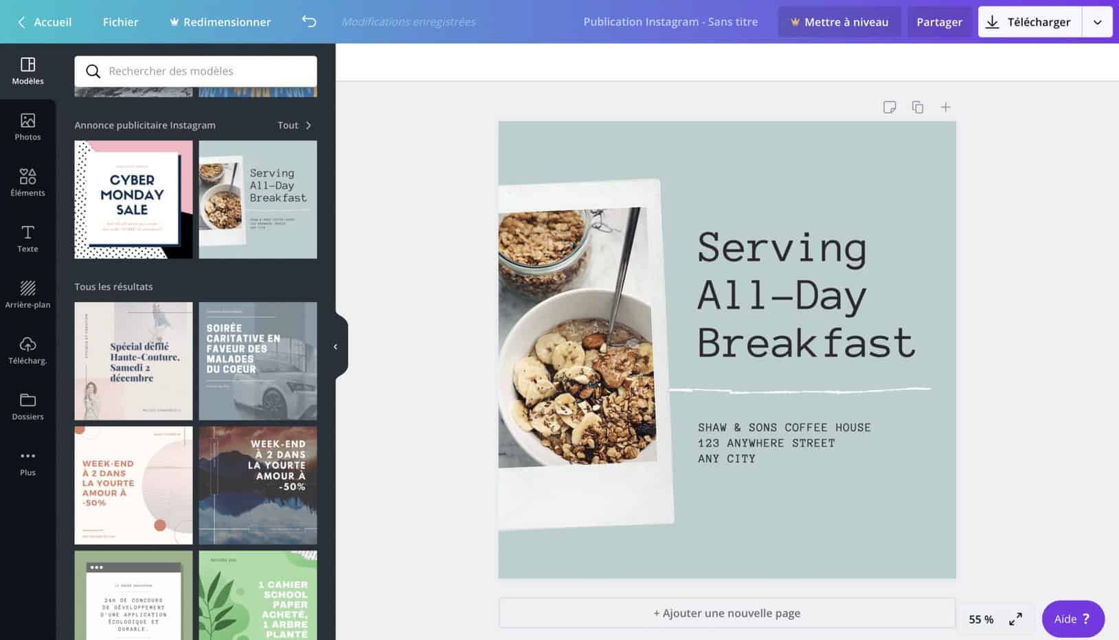 Vous pouvez aussi changer la police, la taille du texte… Ajoutez des éléments (là aussi certains sont premium) pour rendre votre visuel encore plus unique. Le but est de faire quelque chose qui vous plait à vous, de créer votre propre univers.