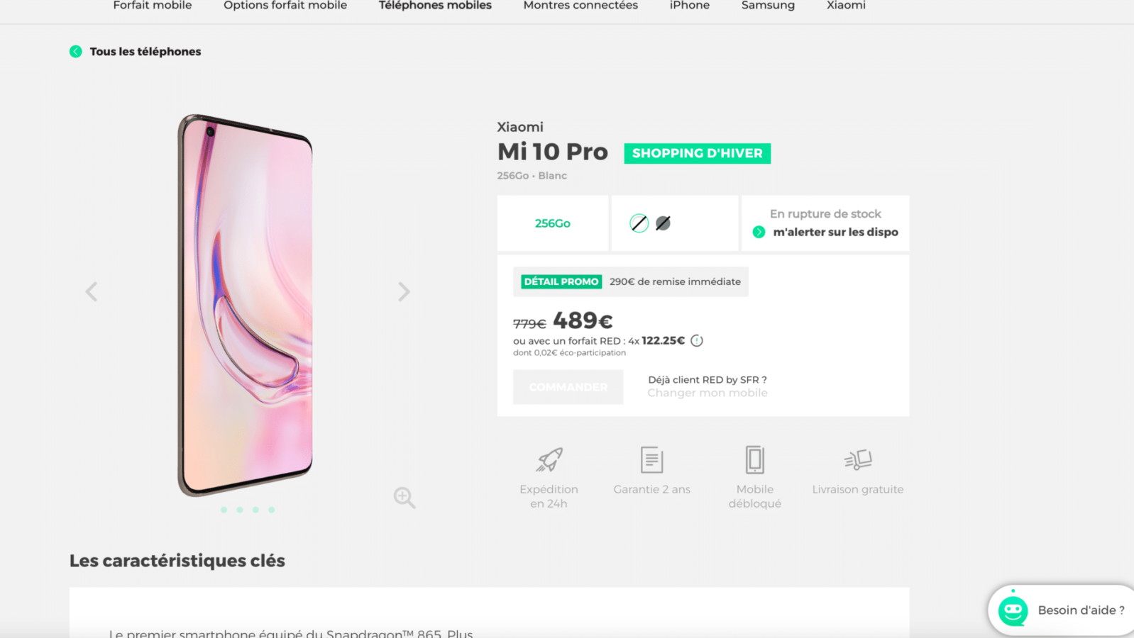 Vous souhaitez acheter un iPhone ou le nouveau Samsung Galaxy S21 ? Sachez qu’il est possible d’avoir jusqu’à 200€ de réduction selon le smartphone que vous désirez. Cette promotion est également disponible jusqu’au 10 février, il faudra être réactif pour ne pas laisser cette occasion passer. Trouvez votre prochain smartphone sur RED by SFR. Alors, lequel vous ferez envie ? Le Xiaomi Mi 10 Pro est disponible au prix de 489€ au lieu de 779€. Pour accompagner votre smartphone, vous avez également les montres connectées qui sont en promotion chez RED by SFR.