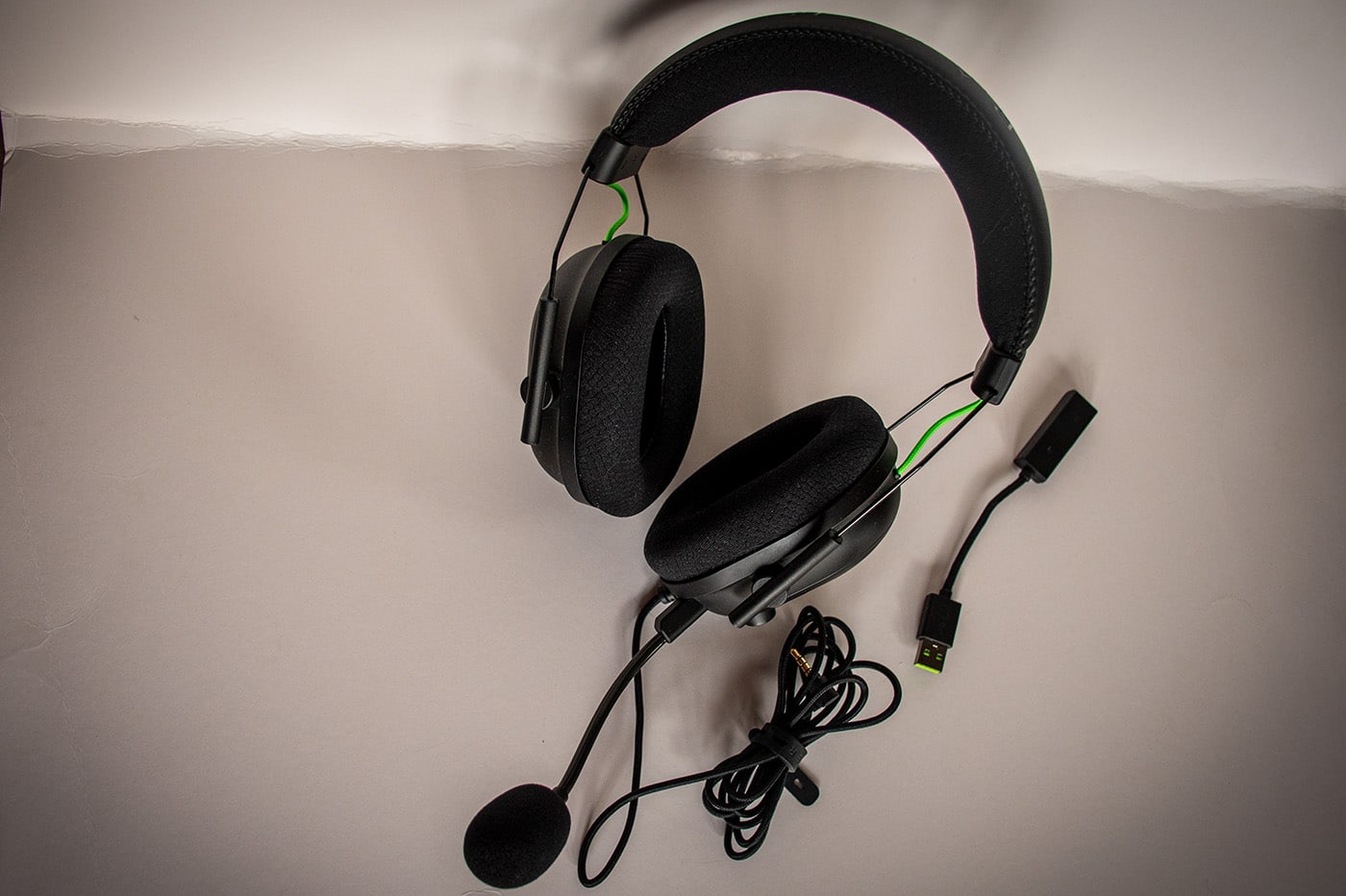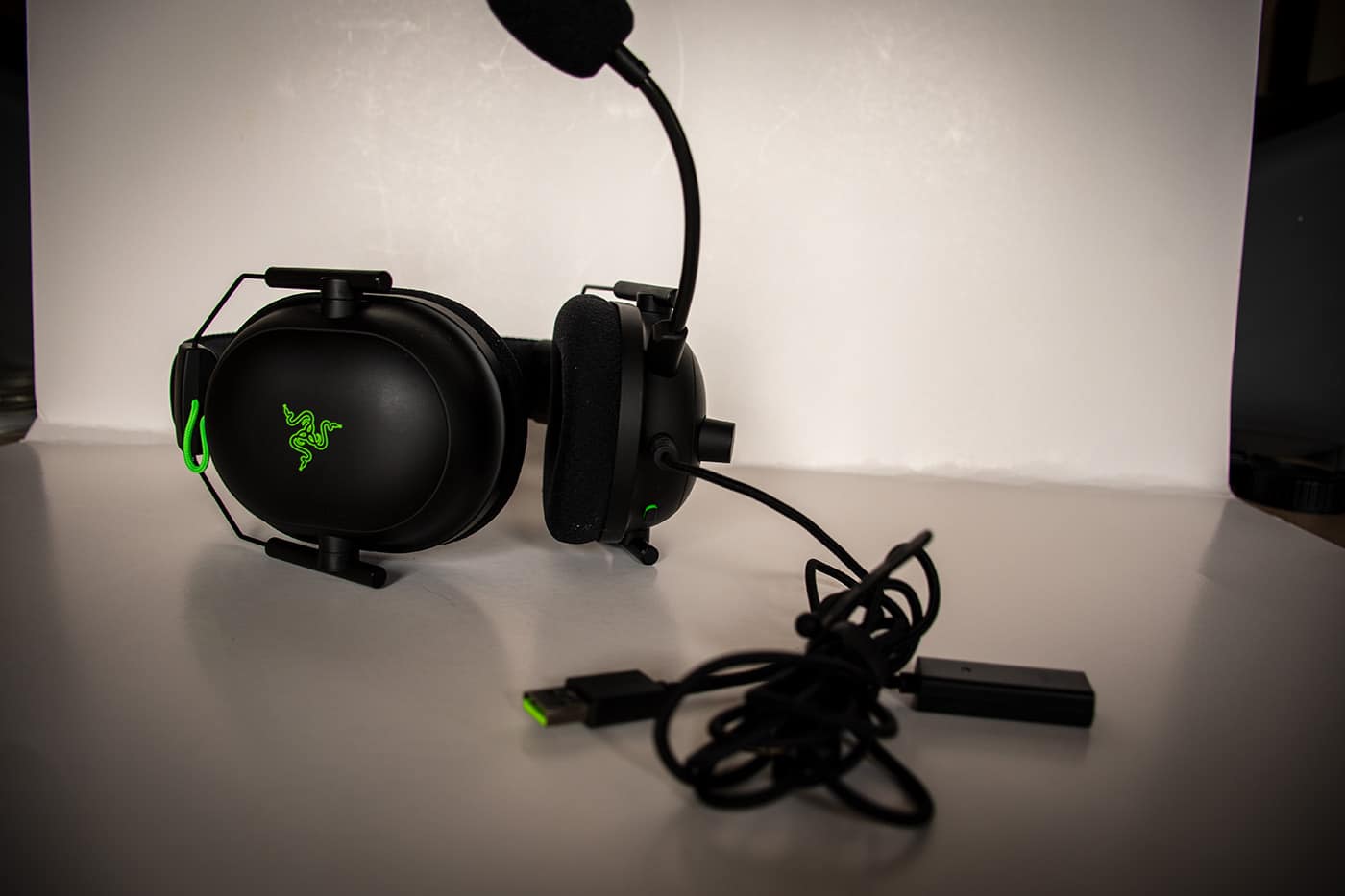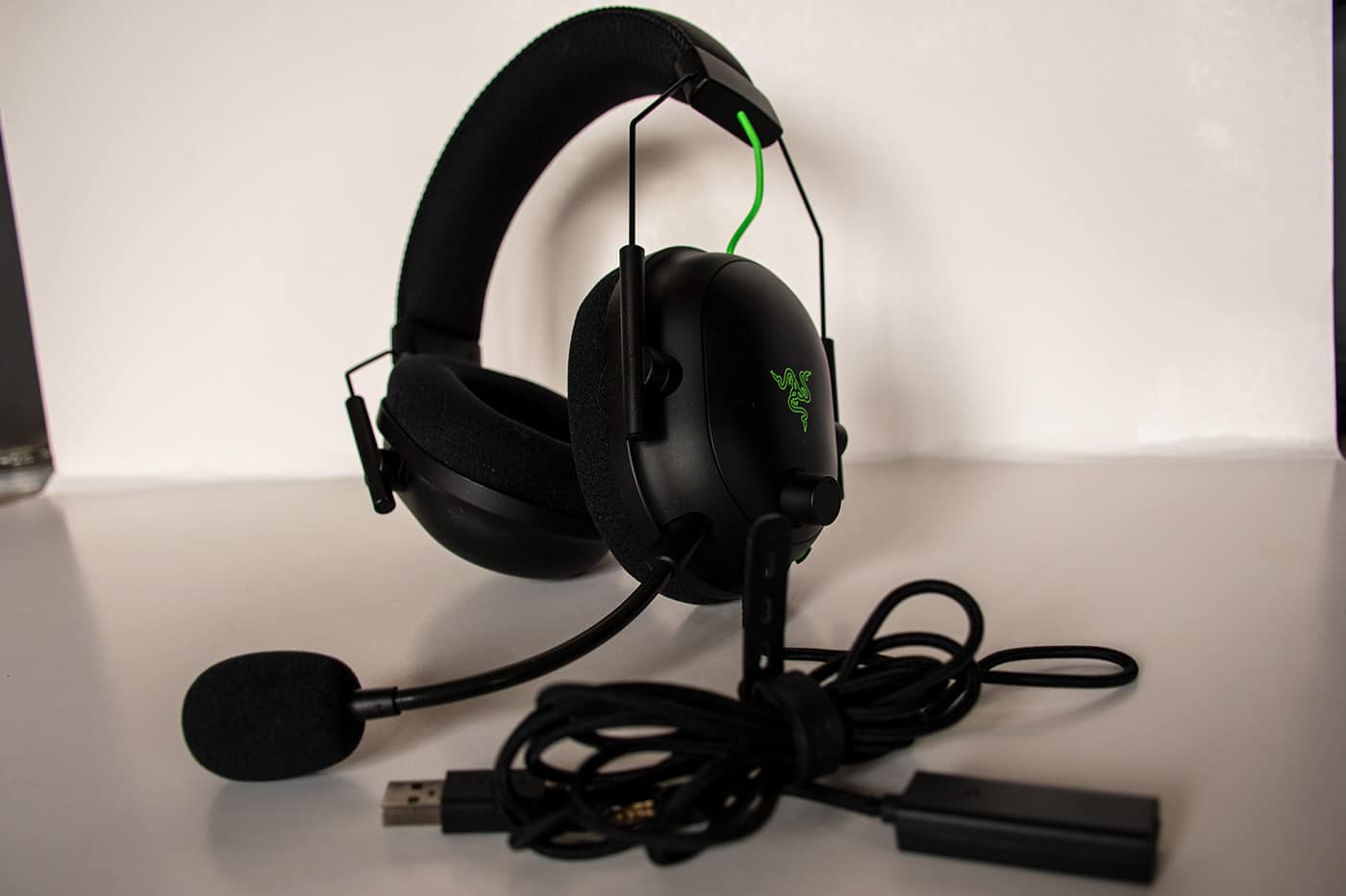 Le câble tressé renforcé est assez long afin de le brancher facilement à l’arrière de votre tour gaming. Le port USB est quant à lui classique, fini les ports USB en or. Nous retrouvons là une belle évolution esthétique comparée au BlackShark V1 qui ressemblait plus à un casque de l’armée et plus sobre par la même occasion.